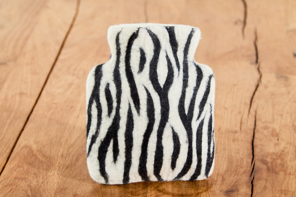 Wärmflasche Zebra-Design aus Wolle (Merino), gefilzt